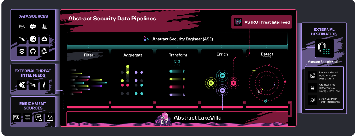 Together, AWS Security Lake and Abstract Security give organizations a complete picture: the durability and openness of AWS for broad analytics, and the in-stream enrichment of Abstract for immediate, actionable insights.